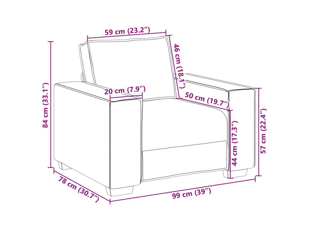 - 1 x křeslo: 99 x 78 x 84 cm (ŠxHxV)