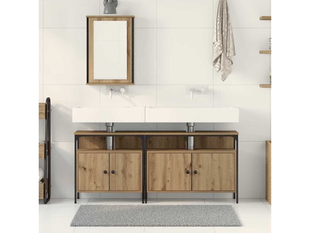 - Stavba z kompozitního dřeva Tento skříňka je z kvalitního kompozitního dřeva, takže je pevná a spolehlivá na každodenní používání. Její hladký povrch dává elegantní vzhled a chrání před vlhkostí, což ji dělá ideální do koupelen.