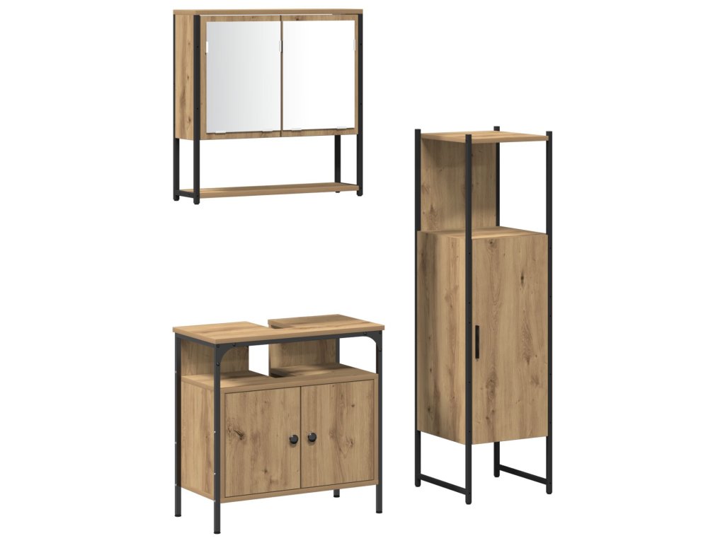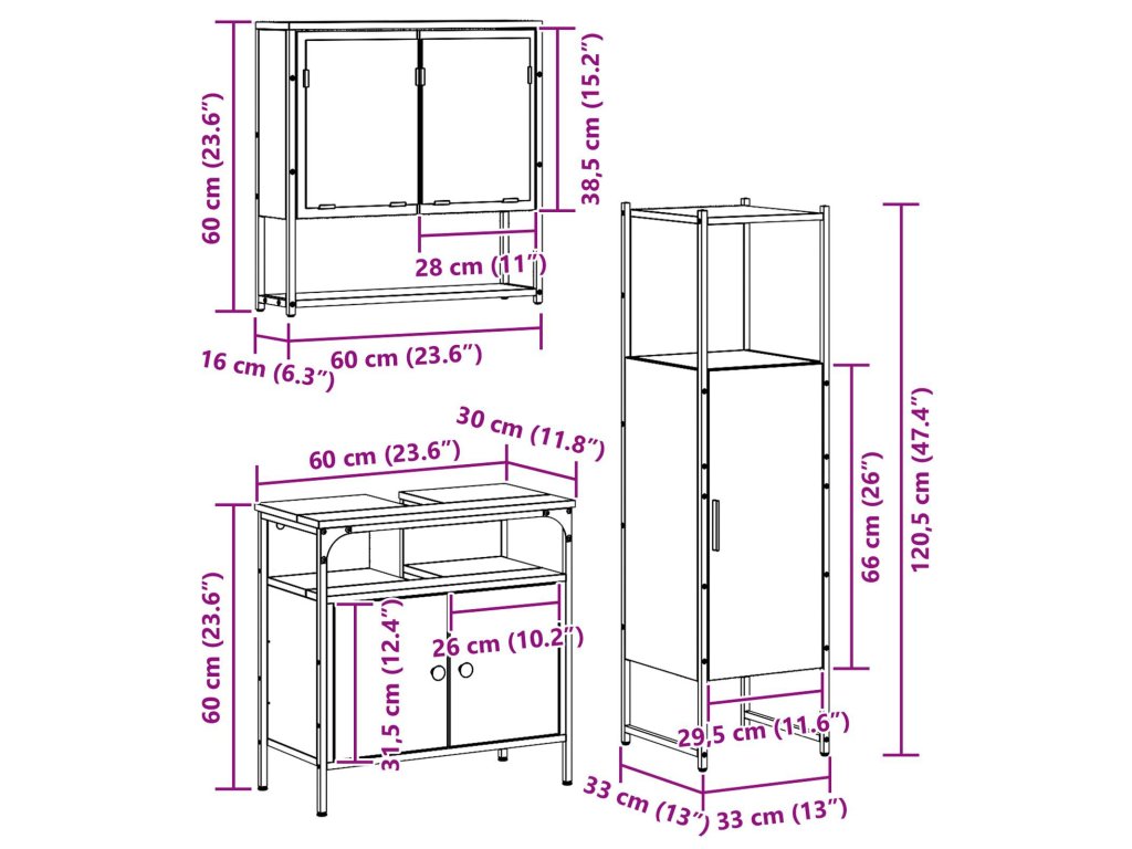 - Komplexní úložné řešení Tento set obsahuje tři důležité kusy — zrcadlovou skříňku, skříňku pod umyvadlo a vysokou koupelnovou skříň. Každý kousek má dost místa pro úhledné uložení toaletních potřeb a dalších věcí. Zrcadlová skříňka je skvělá pro každodenní úpravy a policové uspořádání v koupelnové skříni šetří prostor.