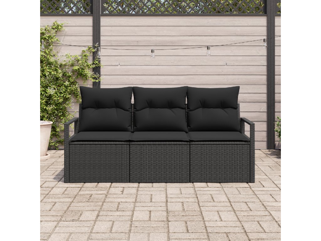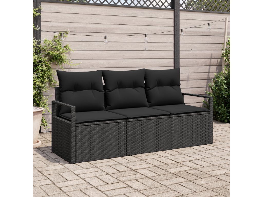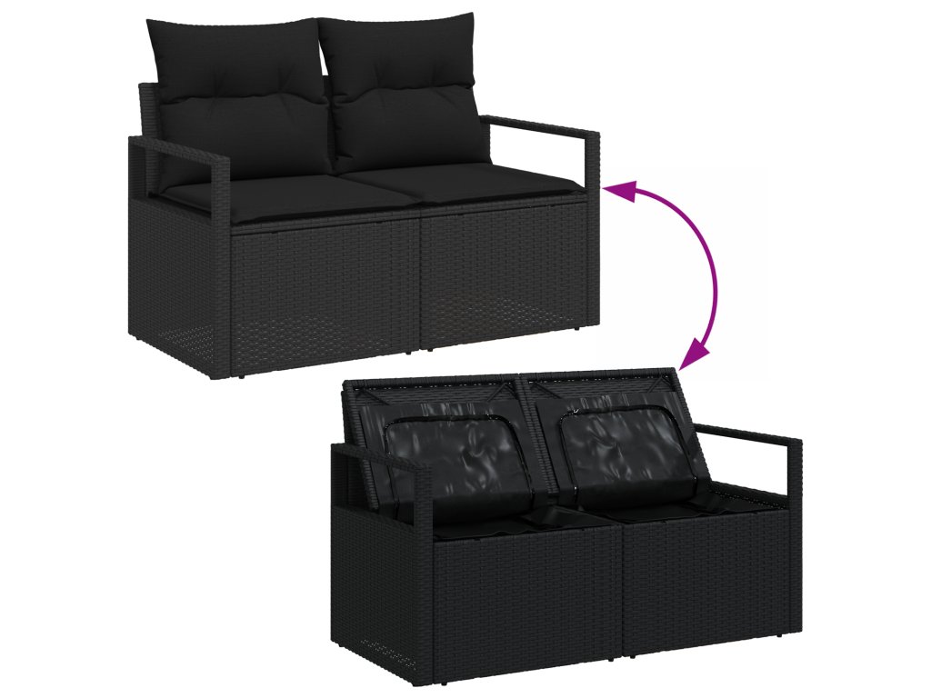 Sada zahradních pohovek s polštářem s úložištěm 3 pcs Černá