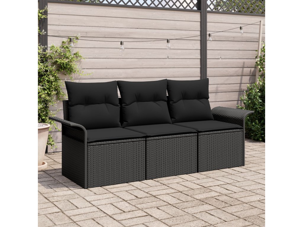 Set pohovek s polštářem 3 pcs Černá polyratan