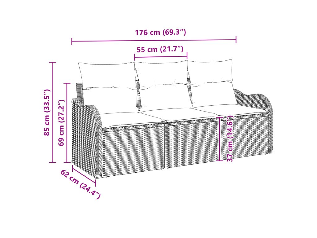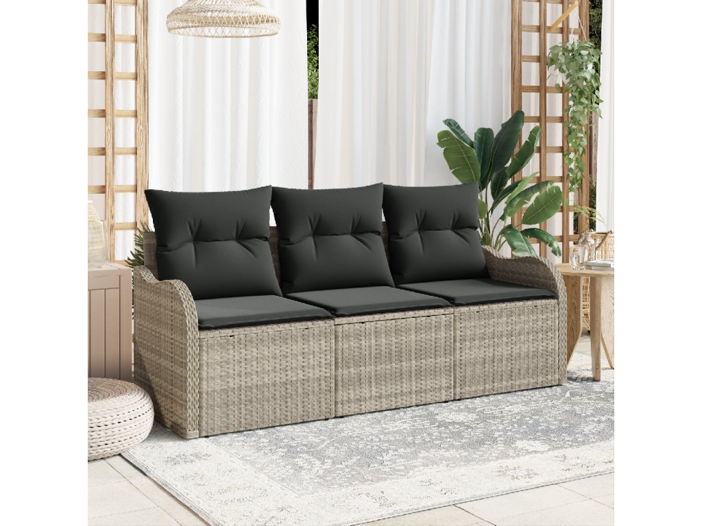 Sada zahradních pohovek s polštářem 3 pcs Světle šedá polyratan