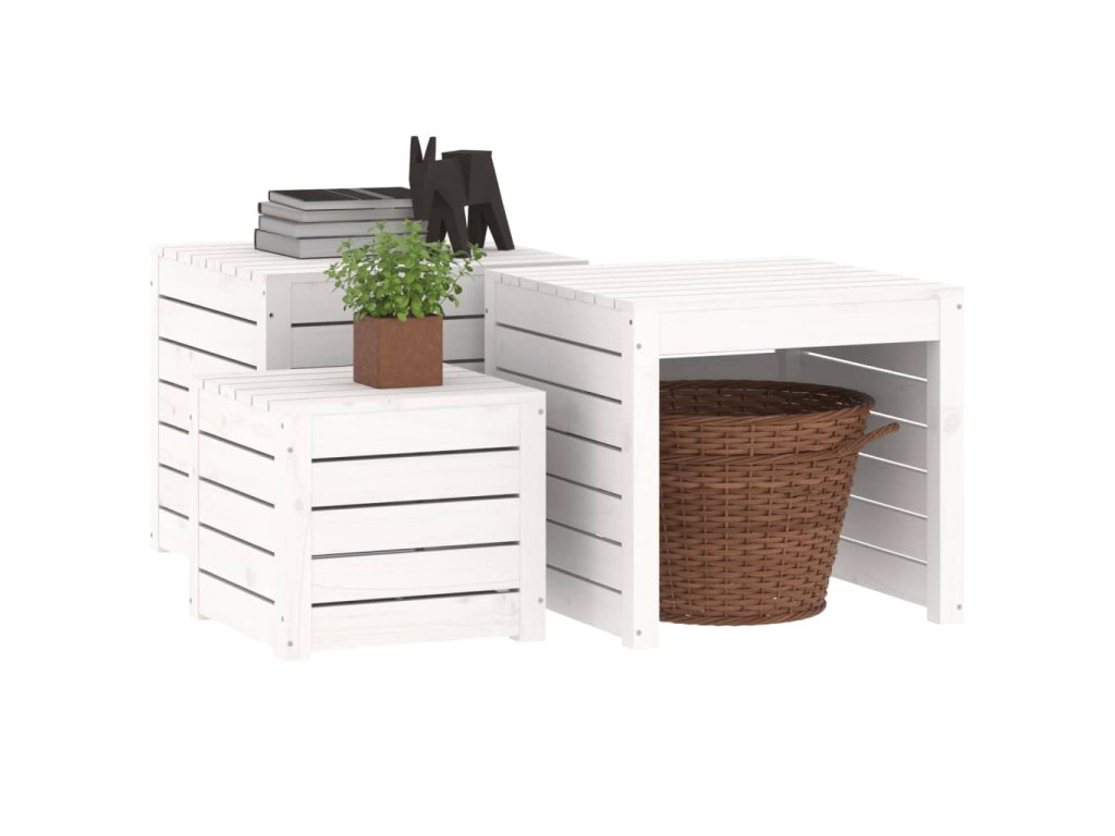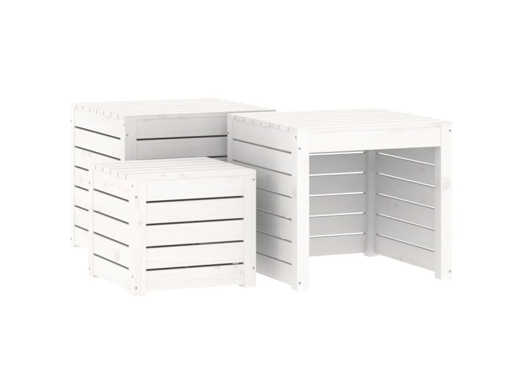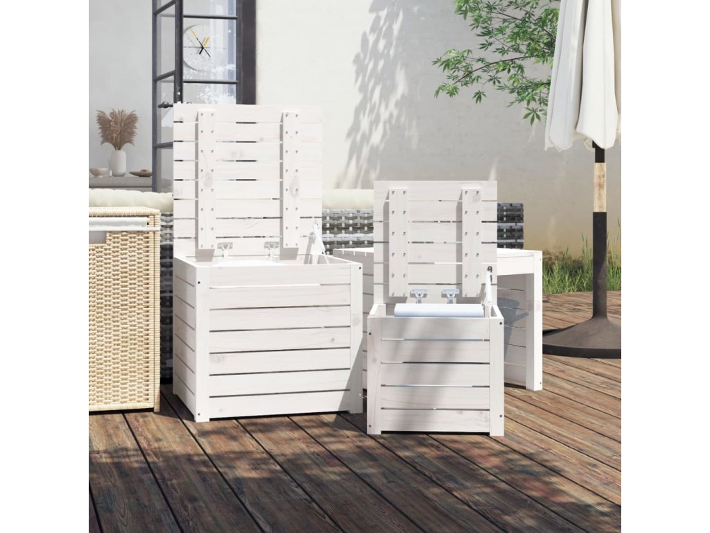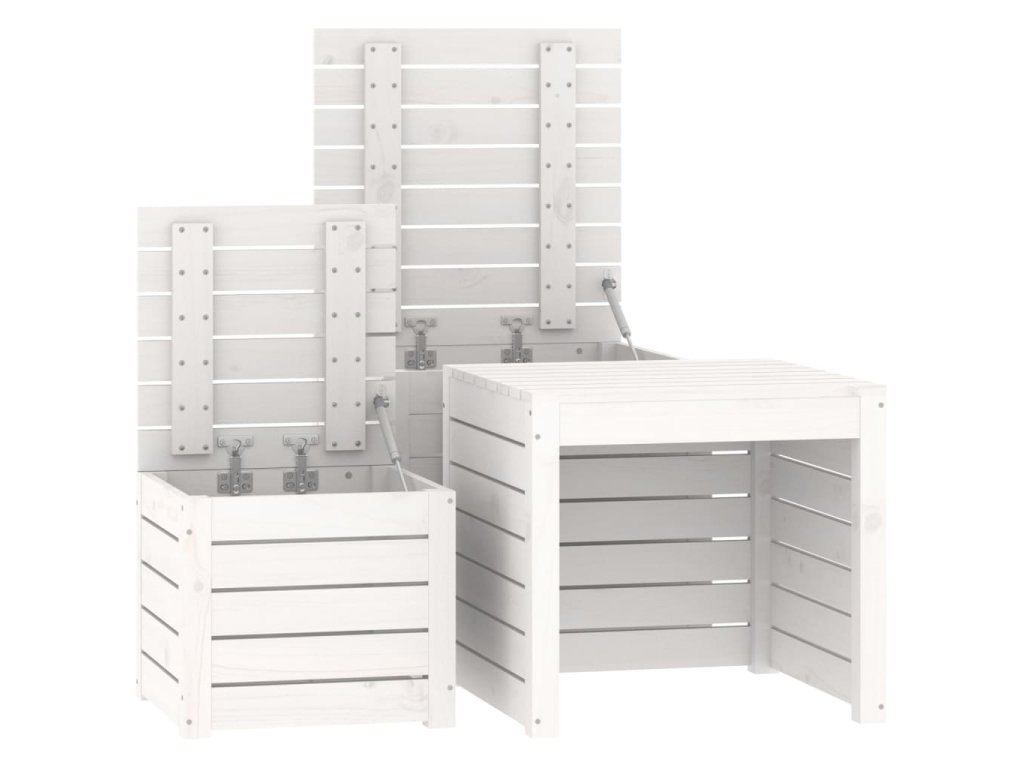 3dílná sada zahradních boxů bílá masivní borové dřevo