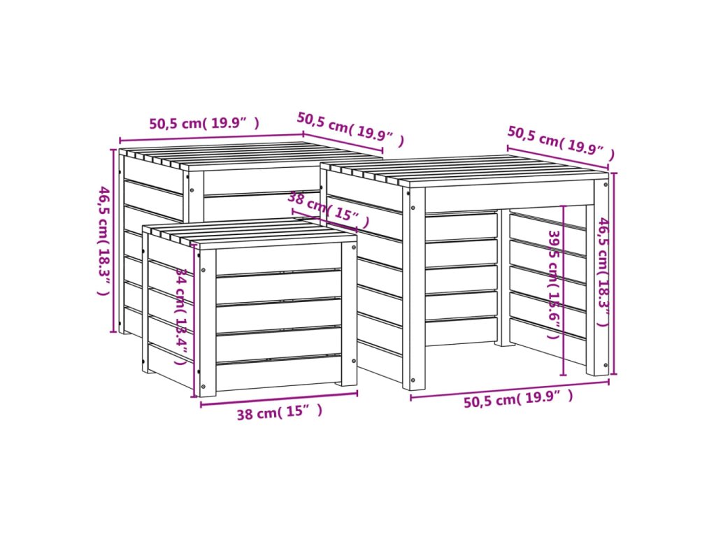 - Rozměry zahradního stolku s úložným prostorem: 50,5 x 50,5 x 46,5 cm (Š x H x V)