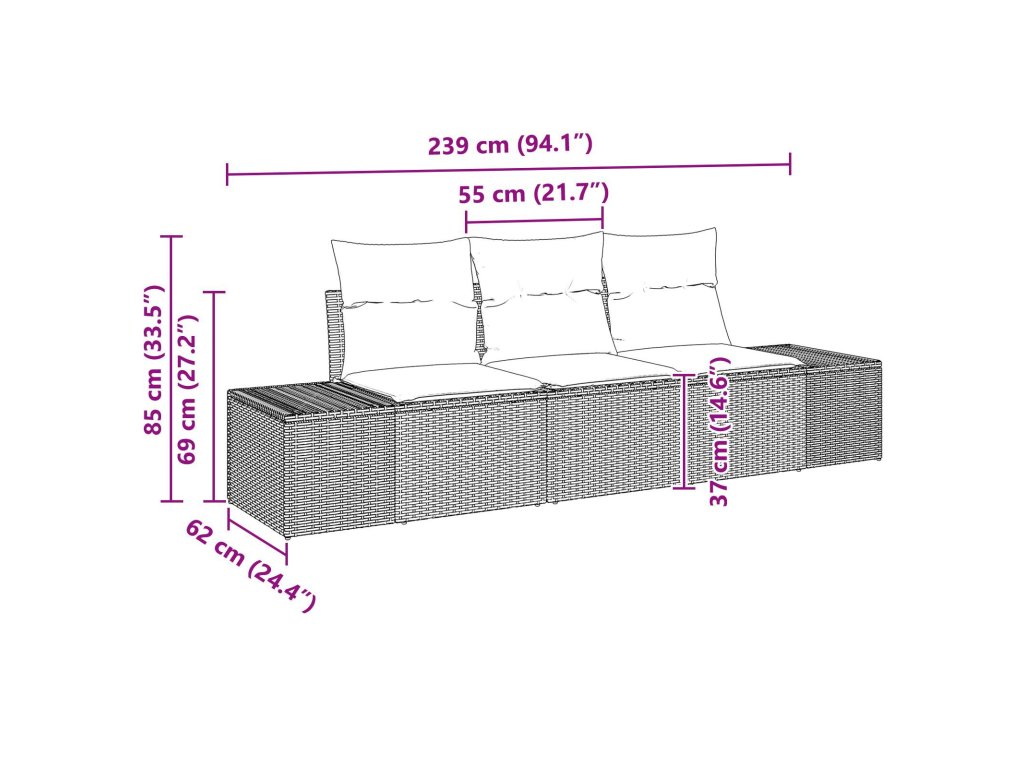 Set pohovek s polštářem 3 pcs Šedá polyratan