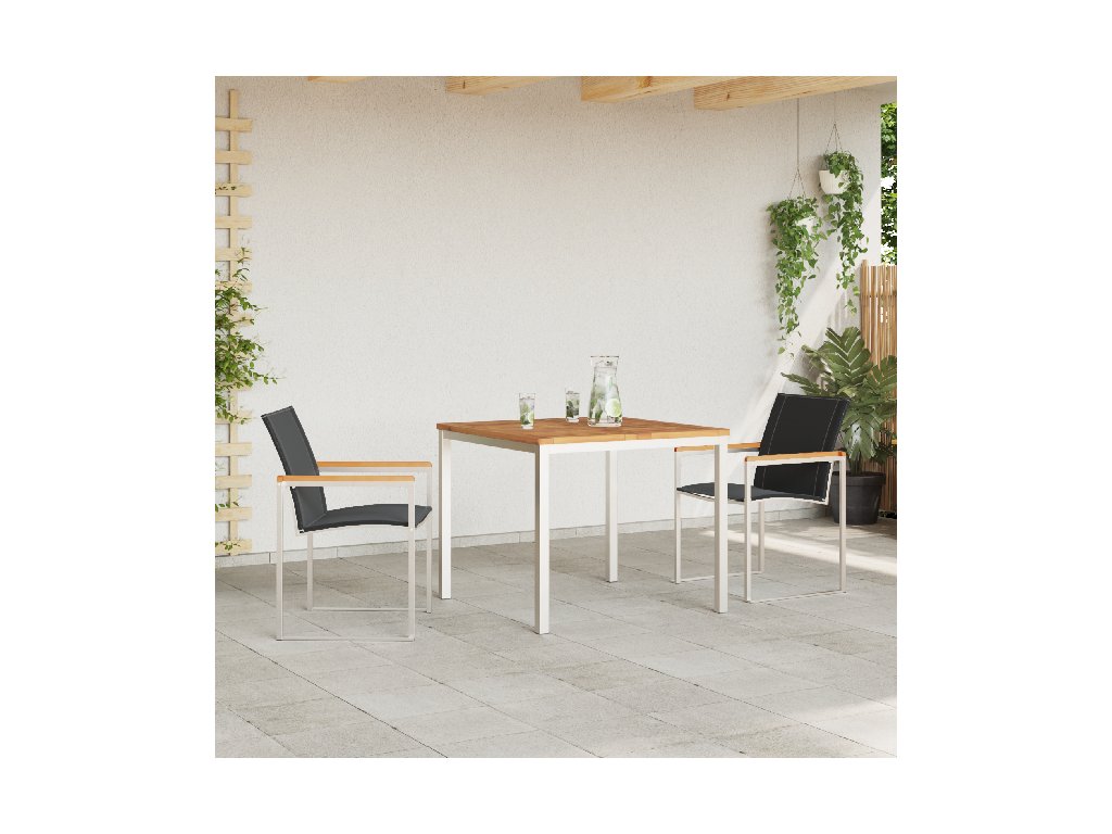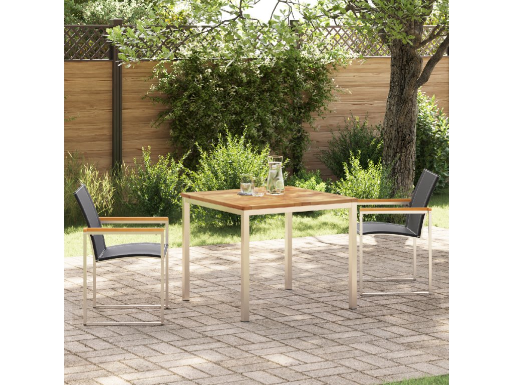 Materiály: Tento zahradní jídelní set spojuje silný ocelový rám s dřevěným stolem, což zajišťuje trvanlivost a přírodní hezký vzhled. Nerezová ocel mu dodává dlouhou životnost a odolává počasí, takže je fakt skvělou volbou pro vaši zahradu. Součásti: Najdete tu dřevěný stůl, který umožňuje odtok vody, takže se nebudou hromadit louže. Silné ocelové rámy zaručují stabilní posezení a skvělý jídelní zážitek, vše navržené pro trvanlivost a hezký vzhled. Vlastnosti / Funkce / Design: S pevnou konstrukcí je tenhle set bezpečný i v různém počasí. Elegantní stůl nejen skvěle vypadá, ale taky brání hromadění vody. Díky silnému ocelovému rámu jde o spojení funkčnosti a stylu pro perfektní venkovní jídelní prostor. Doporučené použití: Ideální pro zahrady a terasy, je tahle jídelní set přesně to pravé pro venkovní zábavu nebo klidné jídlo s rodinou. Jeho moderní vibe se skvěle hodí k současné estetice venkovních prostor. Vytvořte si útulné místo venku pro jídlo, čtení nebo prostě užívání si přírody. Údržba: Pro delší životnost používejte voděodolný obal, když není v provozu. Kovové části stačí otřít vlhkým hadříkem a dobře osušit. Tato pravidelná péče udrží váš zahradní nábytek hezký po celý rok.- Materiál: Masivní teakové dřevo