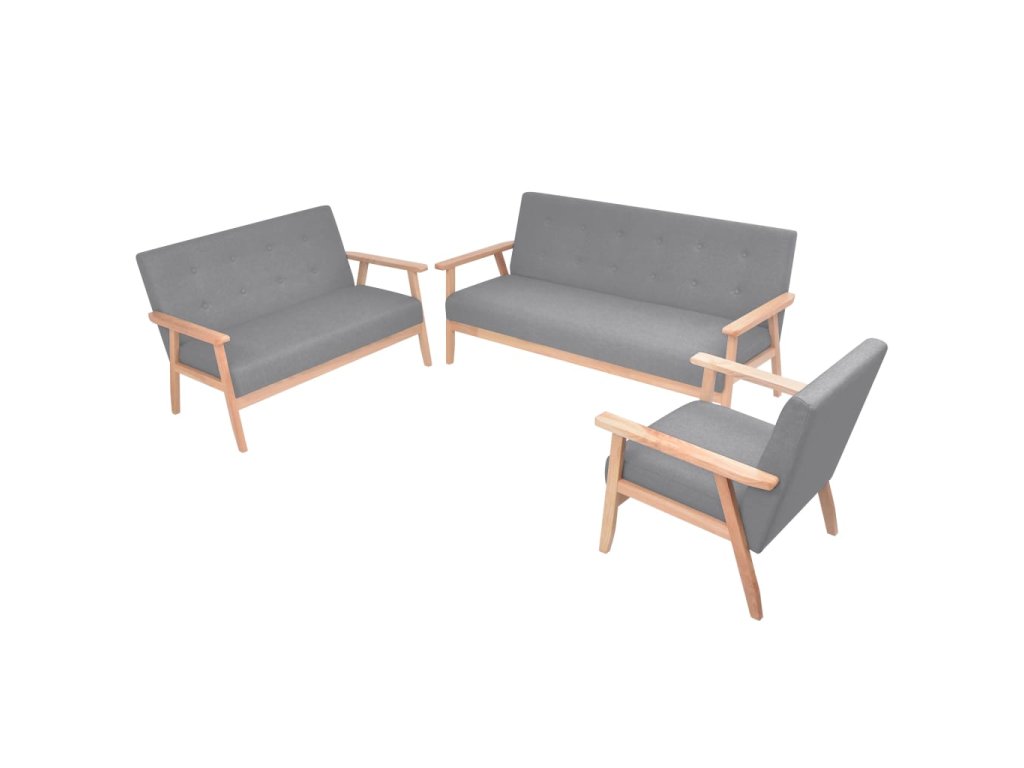 3dílná sedací souprava, světle šedé textilní čalounění