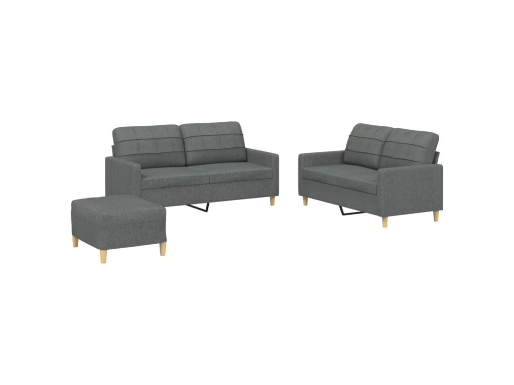 3dílná sedací souprava s poduškami tmavě šedá textil