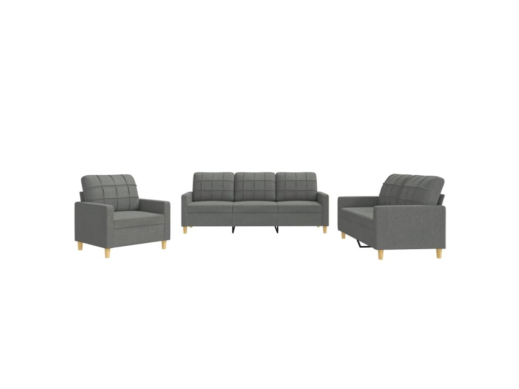 3dílná sedací souprava s poduškami tmavě šedá textil