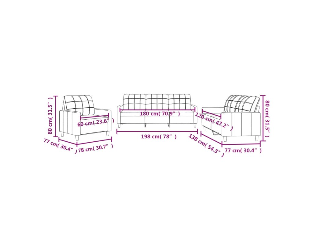 - Celkové rozměry: 198 x 77 x 80 cm (Š x H x V)