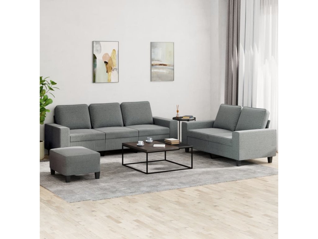 3dílná sedací souprava tmavě šedá textil