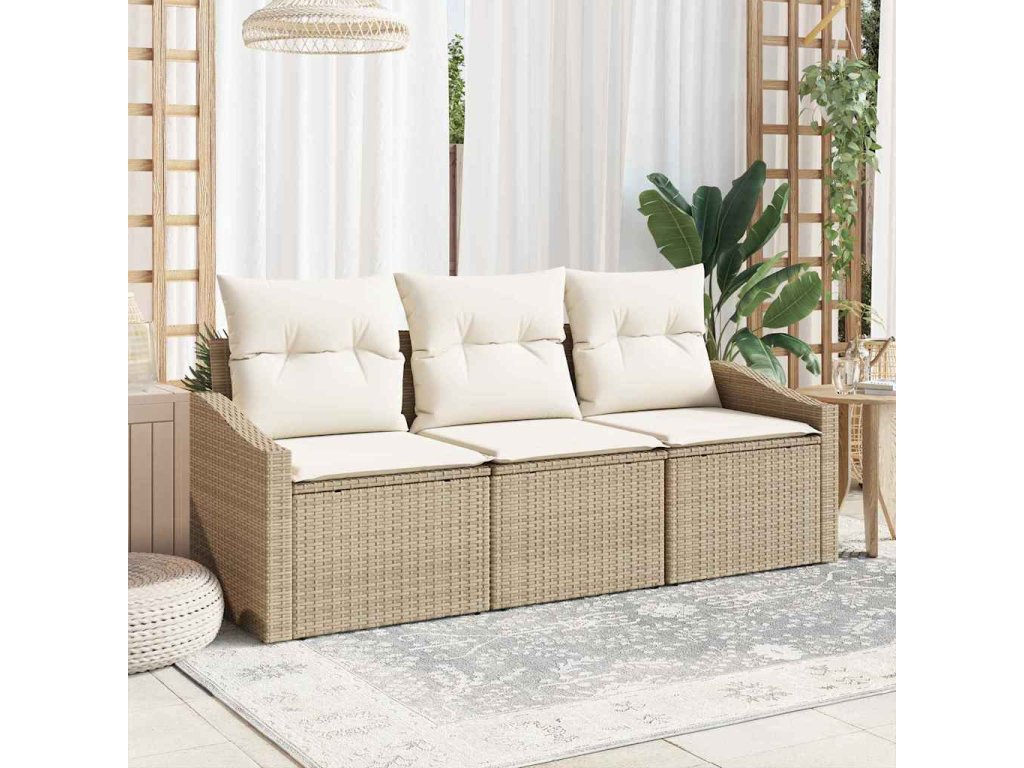 Sada zahradních pohovek s polštářem 3 pcs Béžová a krémová