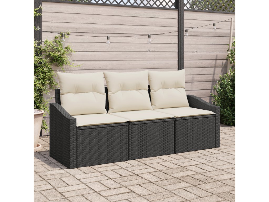 Sada zahradních pohovek s polštářem 3 pcs Černá a krémová