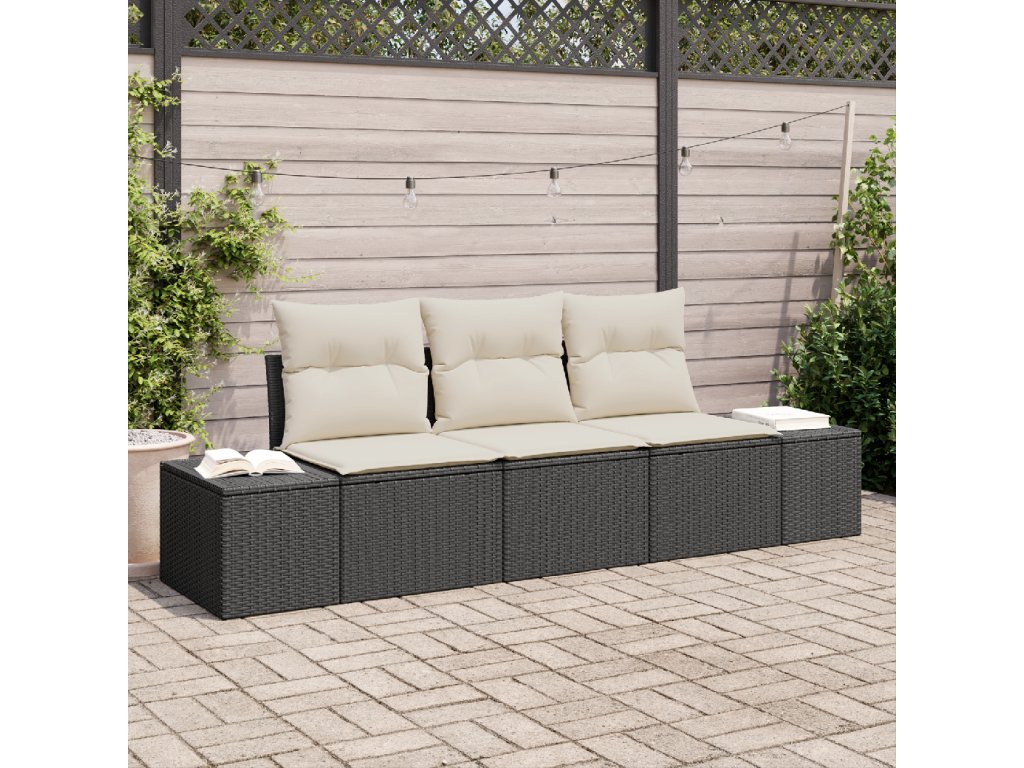 Sada zahradních pohovek s polštářem 3 pcs Černá a krémová