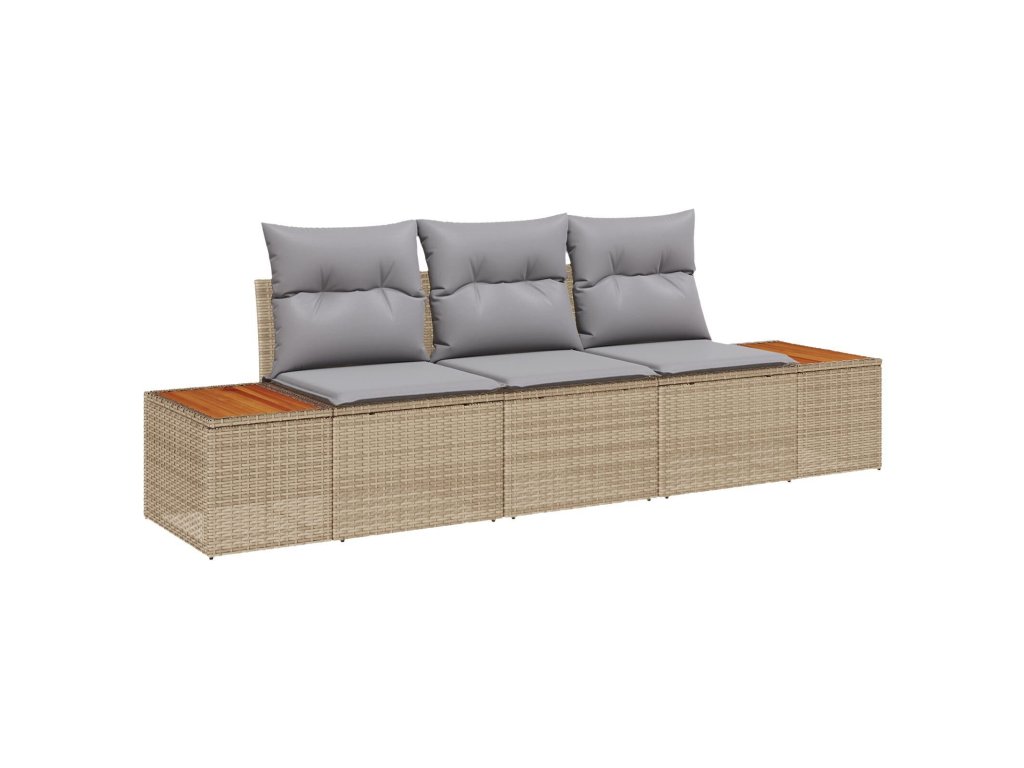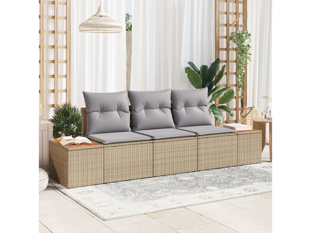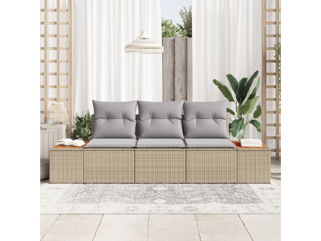 Sada zahradních pohovek s polštářem 3 pcs Béžová polyratan