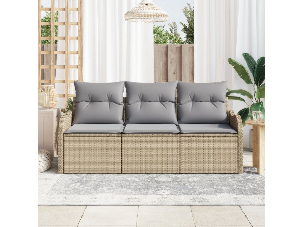 Sada zahradních pohovek s polštářem 3 pcs Béžová polyratan