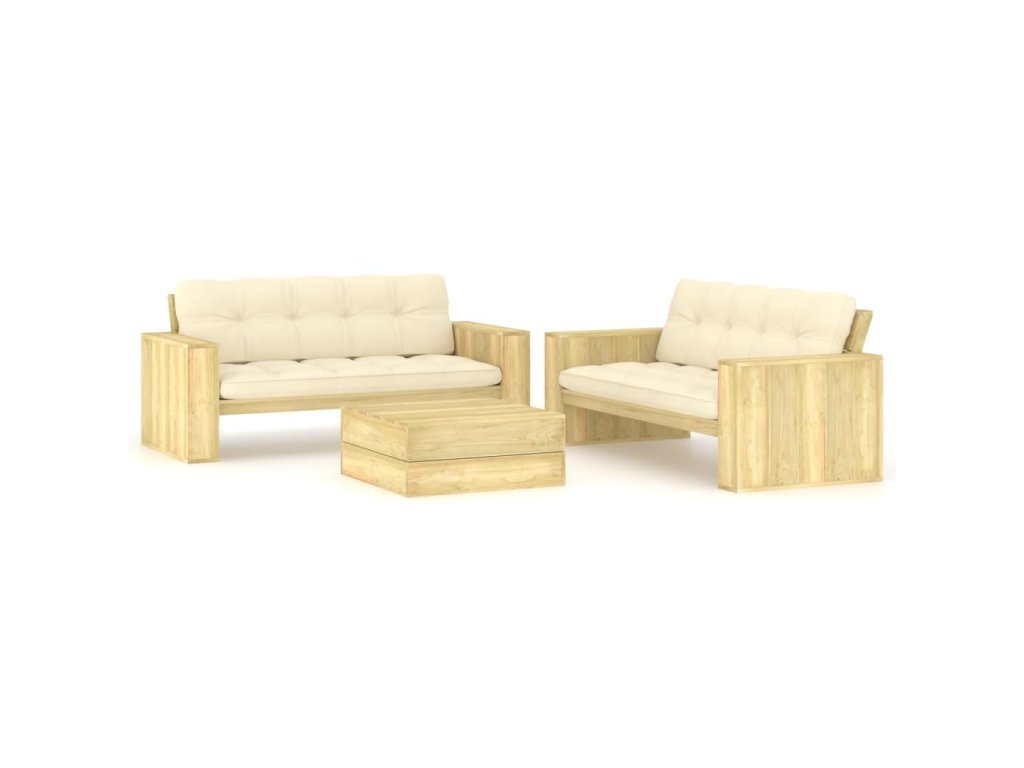 3dílná zahradní sedací souprava a podušky impregnovaná borovice