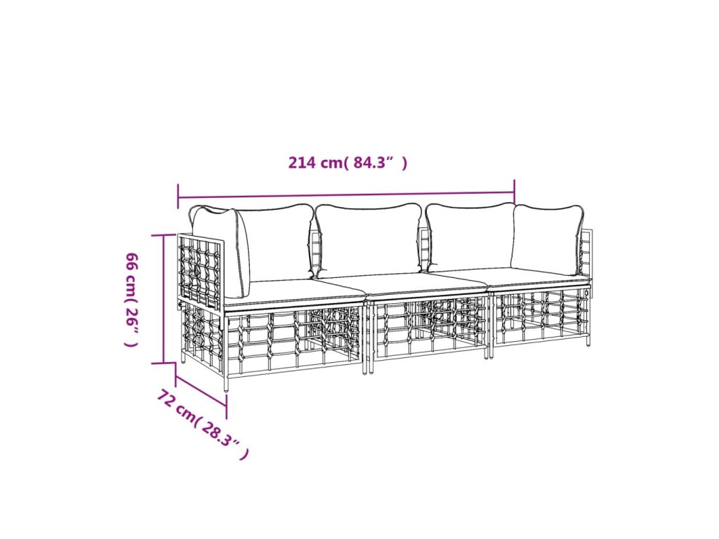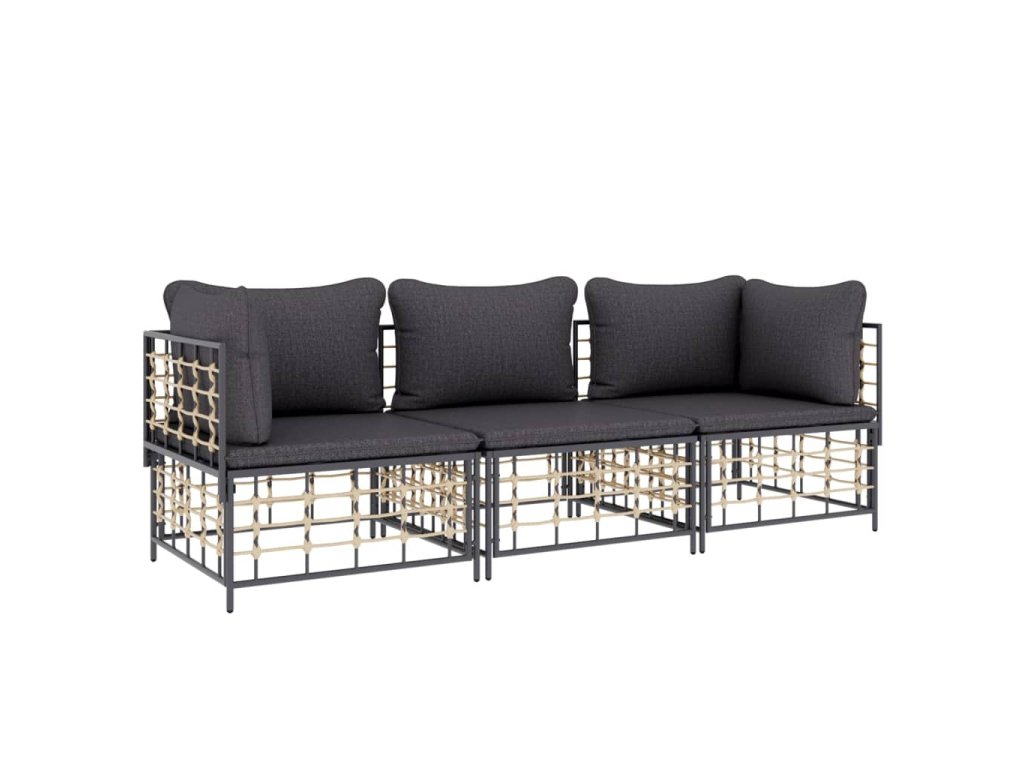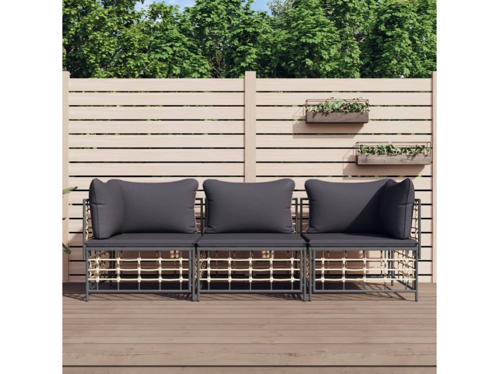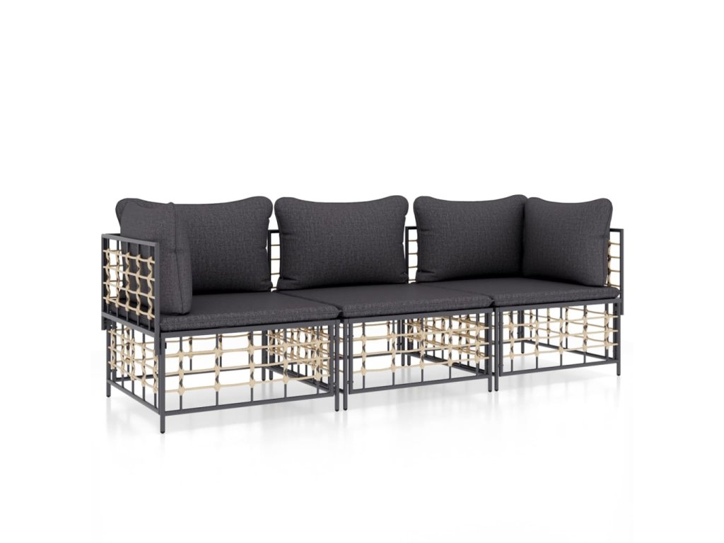 3dílná zahradní sedací souprava s poduškami antracit polyratan