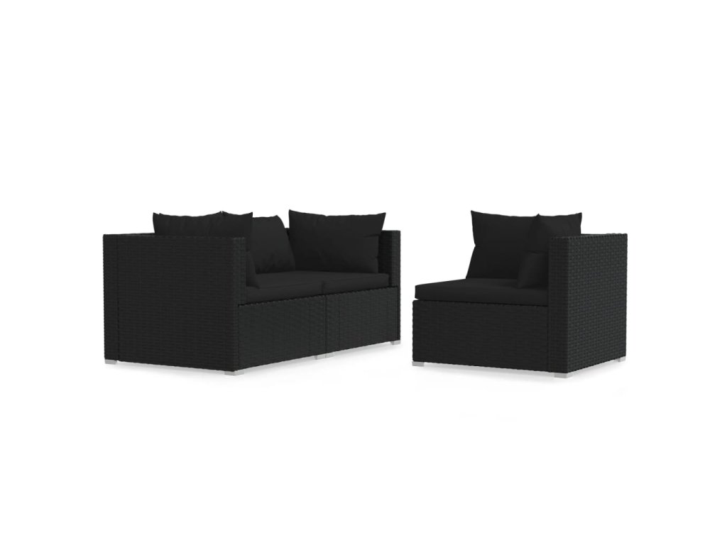 3dílná zahradní sedací souprava s poduškami černá polyratan