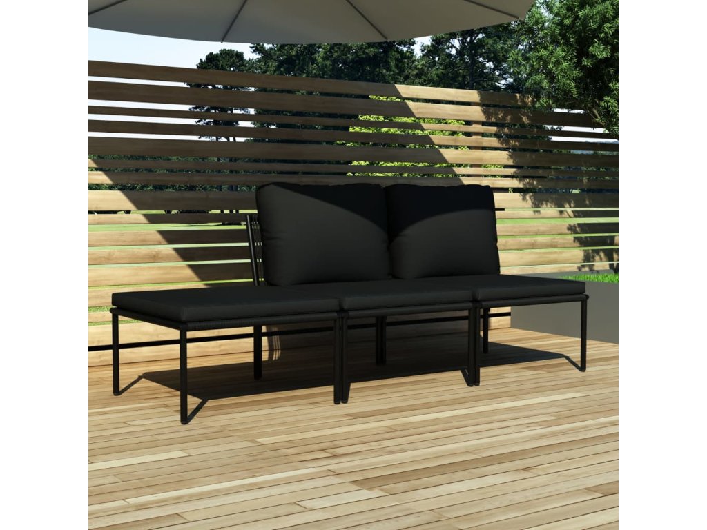 3dílná zahradní sedací souprava s poduškami černá PVC