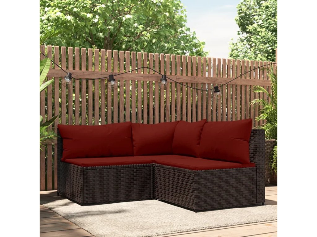 3dílná zahradní sedací souprava s poduškami hnědá polyratan