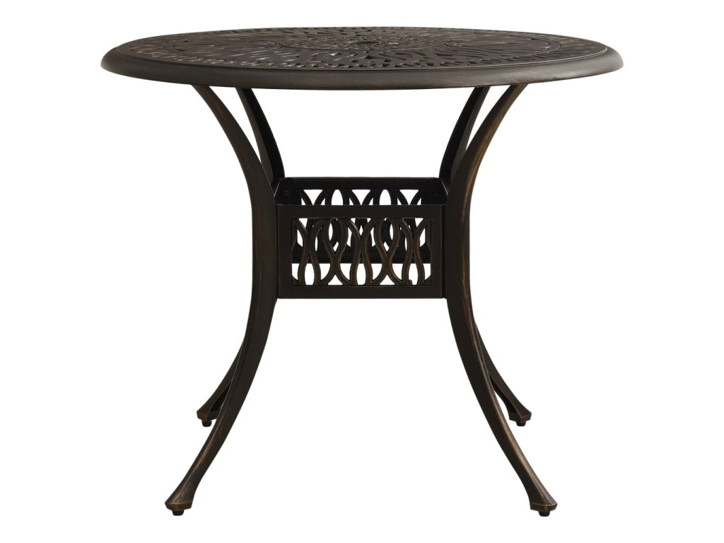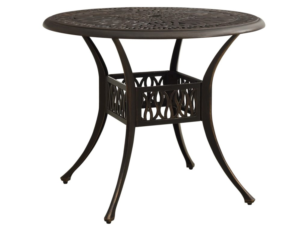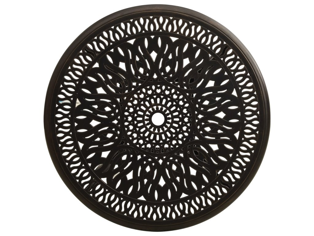 Zahradní stůl a židle z litého hliníku jsou robustní a hodně toho vydrží. Jelikož jsou vyrobené z materiálu, který nerezaví a nepodléhá klimatickým vlivům, jedná se o ideální nábytek pro venkovní použití. Vzhledem ke svému překrásnému designu zapůsobí bistro set ve vašem venkovním bydlení jako elegantní doplněk. Konferenční stolek má navíc uprostřed otvor, kam můžete zasunout slunečník, abyste se ochránili před sluníčkem či deštěm.