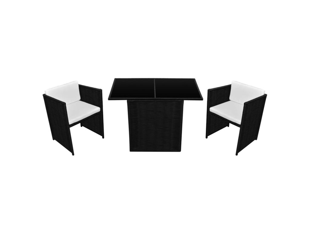 Dodávka obsahuje 1 stůl se skleněnou deskou, 2 židle, 2 polstry na sedáky a 2 polstry na opěradla.