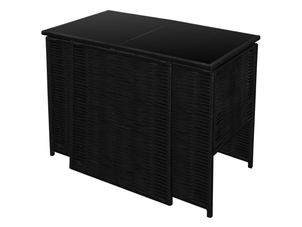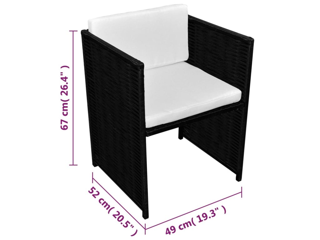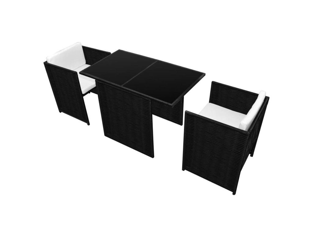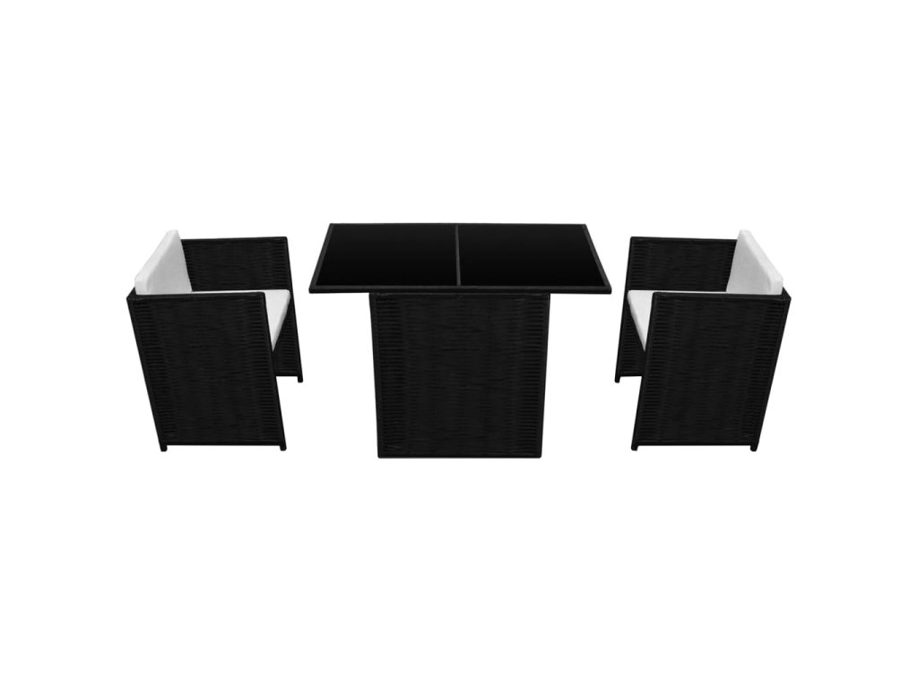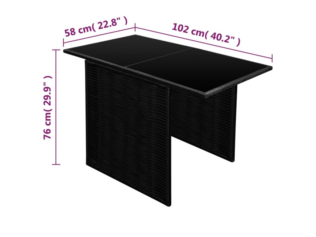 Venkovní jídelní set je vyrobený z odolného a nepromokavého PE ratanu a stolek má skleněnou desku, tudíž se sada snadno čistí, je odolná proti opotřebení a vhodná pro každodenní použití. Ocelová konstrukce s práškovým povrchem činí stůl a židle velmi robustní a odolné. Díky lehké konstrukci se všechny kusy snadno přemisťují. Židle mohou být snadno zasunuty pod stůl, když je zrovna nepoužíváte. Silné odnímatelné polstry na sedáky jsou velmi pohodlné. Potahy na polstry jsou opatřeny zipy a lze je snadno sejmout a vyprat.