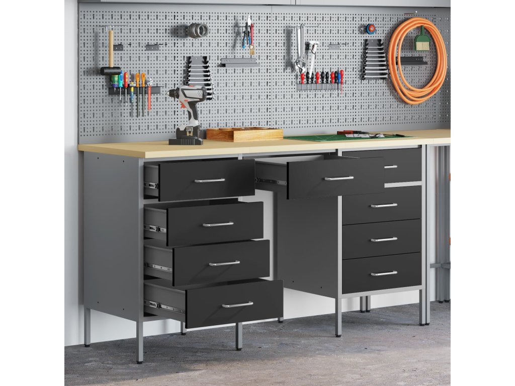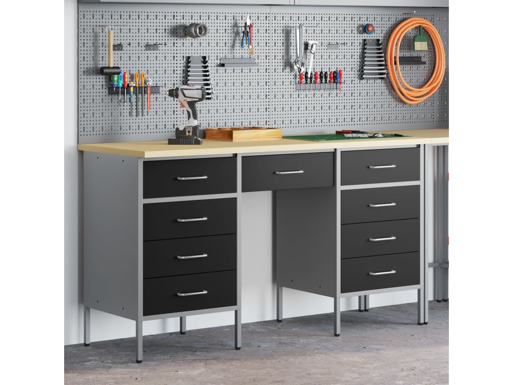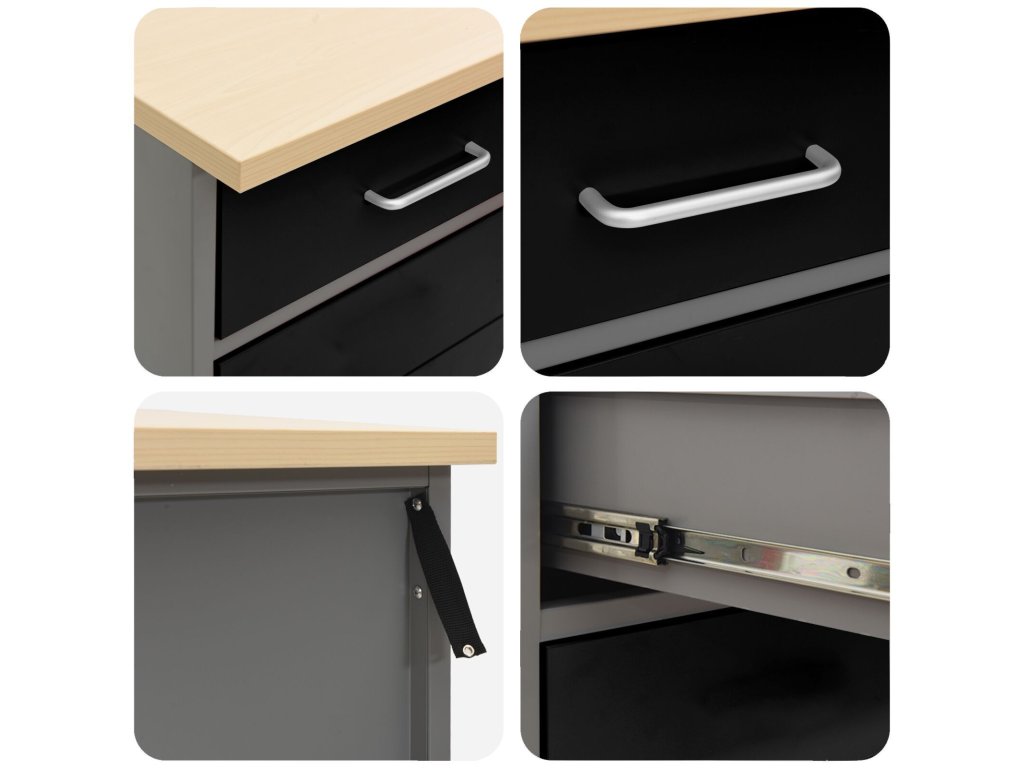 Vačkové zámky: Tenhle organizér má spolehlivé vačkové zámky, které ti dodají extra bezpečnost, aby tvoje nářadí a drobnosti zůstaly chráněné. Zámky se hladce otáčejí a zamykají, takže se k tvému majetku nikdo nedostane. Odolná konstrukce: Navržený, aby vydržel, tenhle organizér na nářadí zvládá každodenní používání. Jeho silná konstrukce znamená, že pořád vypadá dobře a funguje skvěle i po delší době, takže na něj můžeš spolehnout ve své dílně. Industriální estetika: S industriálním designem inspirovaným městskými prostory, jako jsou sklady, dodává styl, zatímco je super praktický. Pouze pro interiér: Tenhle organizér je určený na vnitřní prostory, zejména dílny, aby tvoje nářadí zůstalo uklizený a chráněný před počasím. Jednoduchá údržba: Udržet tenhle organizér pěkně vypadat je snadný. Stačí rychle otřít vlhkým hadříkem, aby jsi se zbavil prachu a špíny, takže je lehký na údržbu.- Barva: Černá
