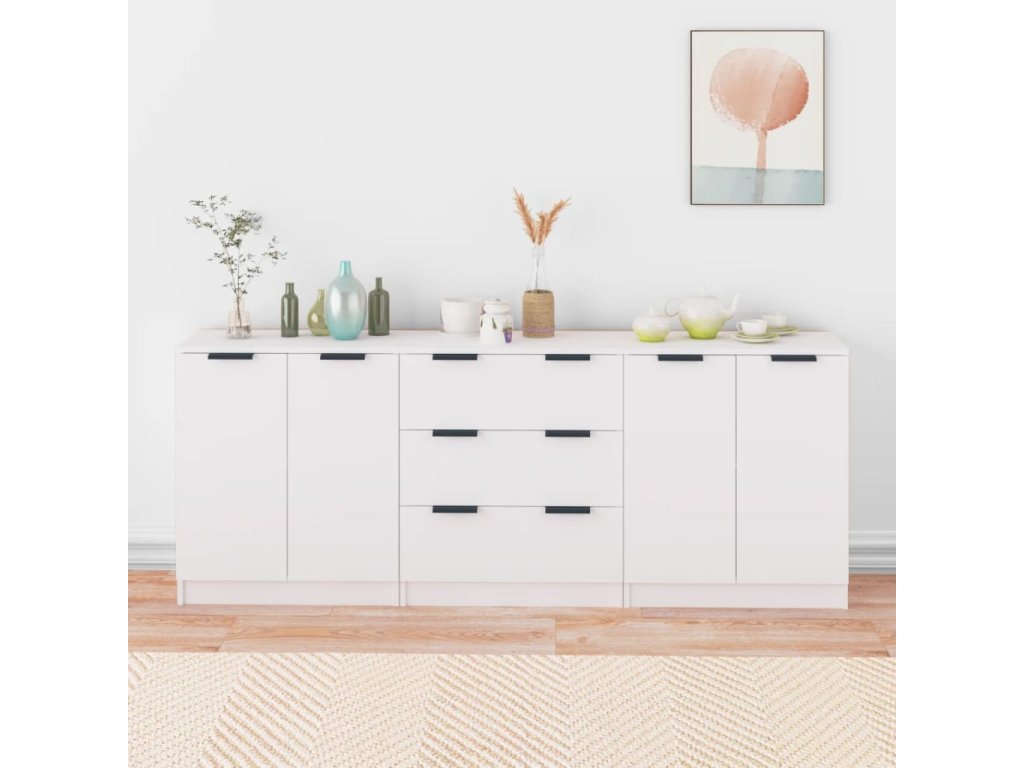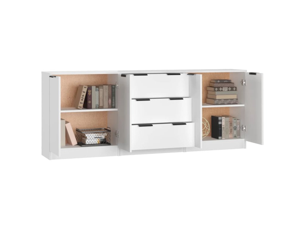 3dílný příborník bílý kompozitní dřevo