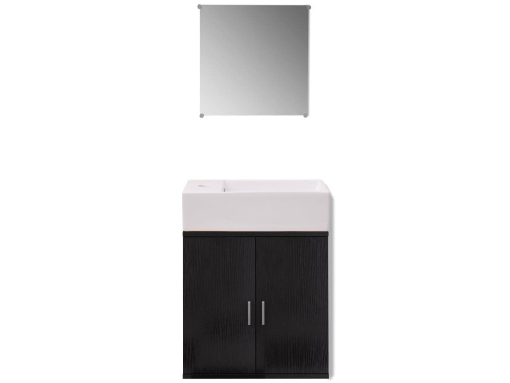 Sada nábytku sestává ze zrcadla a skříňky pod umyvadlo. Skříňka pod umyvadlo poskytuje dostatečný prostor pro ukládání vašich toaletních potřeb, zkrášlovacích přípravků a různých druhů drobných předmětů. Tato koupelnová skříňka, vyrobená z vysoce kvalitní dřevotřísky, je velmi robustní a odolná.