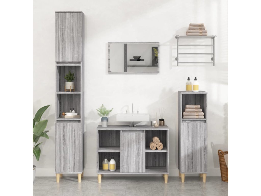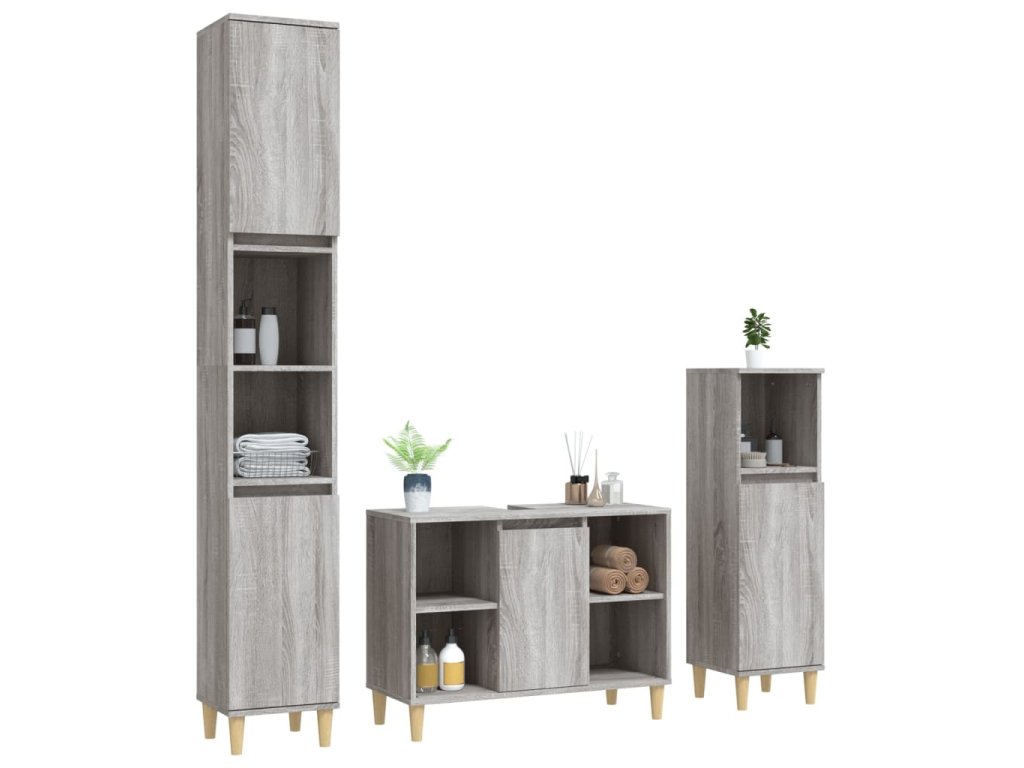 3dílný set koupelnového nábytku šedý sonoma kompozitní dřevo