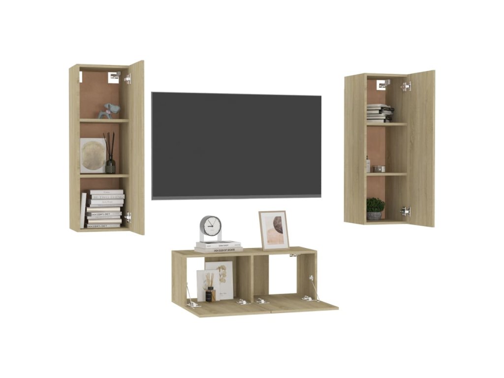 3dílný set TV skříněk dub sonoma kompozitní dřevo
