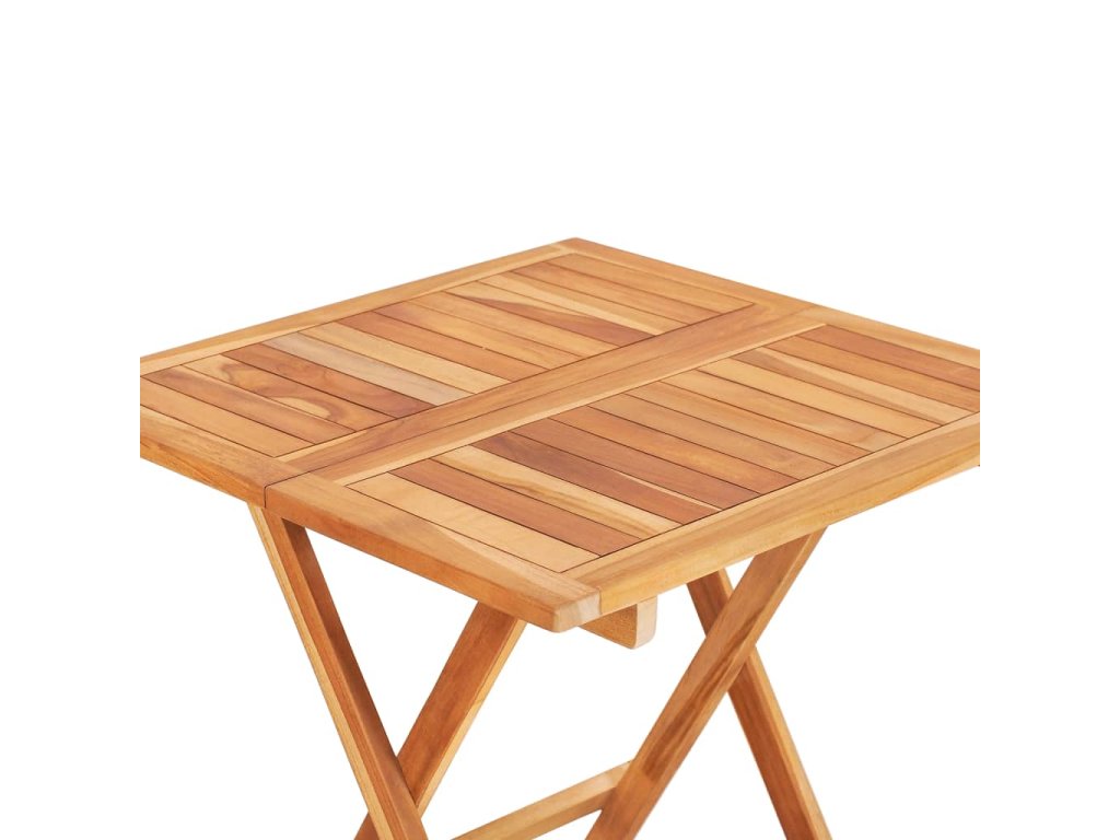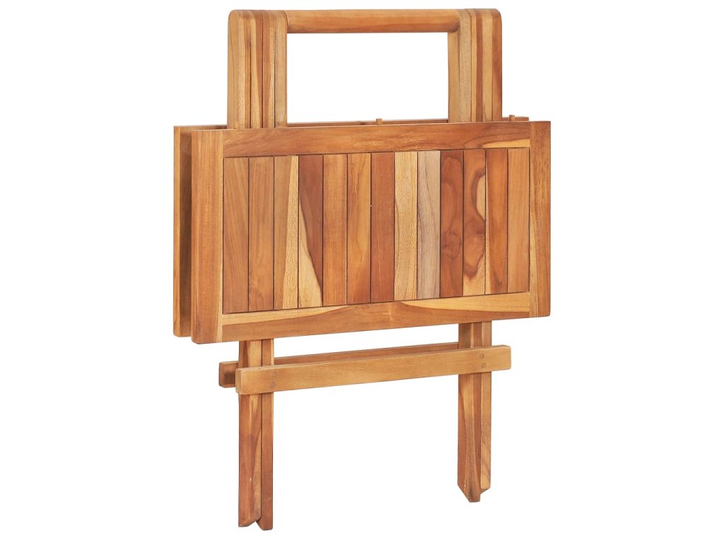 Nábytek je zhotovený z extrémně odolného teakového tvrdého dřeva, které již prošlo procesem smršťování, bylo uměle vysušené a poté jemně a dohladka obroušené. Teakové dřevo je proslulé svou výjimečnou pevností a klimatickou odolností, jejichž zásluhou je zdaleka nejvhodnějším materiálem pro výrobu zahradního nábytku. Jedná se tedy o skvělou volbu, pokud si chcete pořídit nábytek, který vám vydrží sloužit dlouhá léta. Můžete mu ponechat jeho přírodní odstín nebo ho natřít či jinak přebarvit na svou oblíbenou barvu. Obroušený povrch se snadno udržuje a propůjčuje setu rafinovaný vzhled. Když teakový stůl se židlemi právě nepoužíváte, snadno ho složíte pro úsporu místa. Skládací stůl a židle jsou již sestavené.