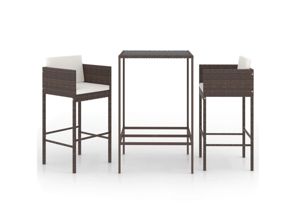3dílný zahradní barový set s poduškami polyratan hnědý