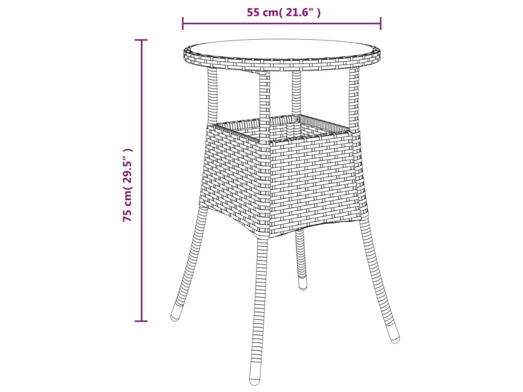 - Materiál: polyratan, práškově lakovaná ocel, tvrzené sklo