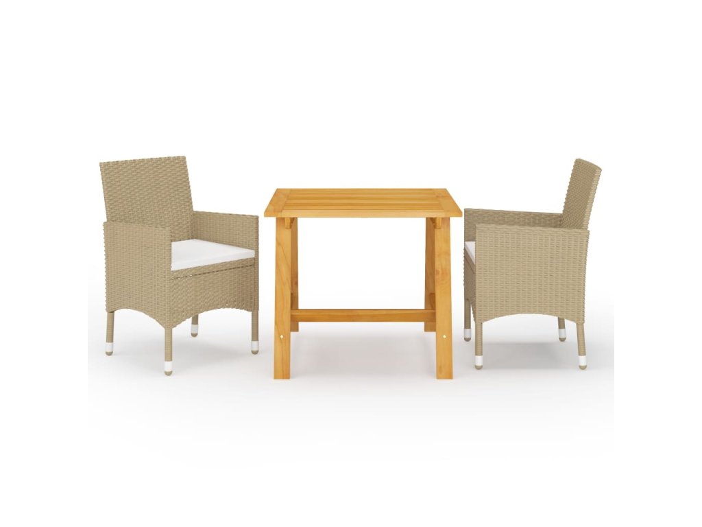 Jídelní stůl je zhotovený z masivního akáciového dřeva s olejovaným povrchem, takže je stabilní, odolný a nenáročný na údržbu. Jídelní židle mají rám z práškově lakované oceli, opletený klimaticky odolným PE ratanem, jsou tudíž odolné a snadno se čistí. Zahradní židle mají zaoblená opěradla a područky, což přispívá k většímu pohodlí, stejně jako jejich ergonomický tvar. Každé křeslo je opatřené odnímatelnou, hustě polstrovanou poduškou, která vám při odpočinku zaručí mimořádný komfort.