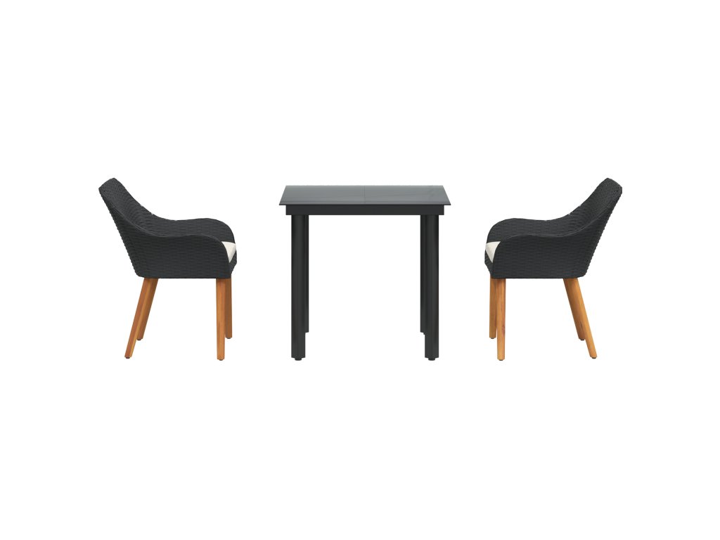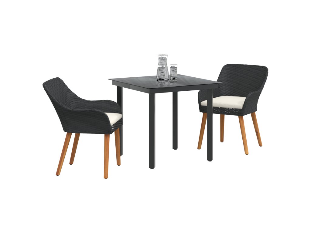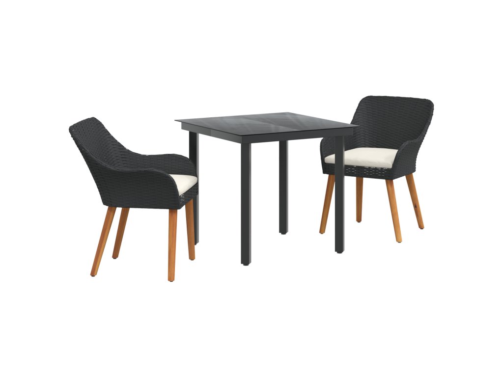 Zahradní jídelní souprava s polštářem 3 pcs Černá polyratan