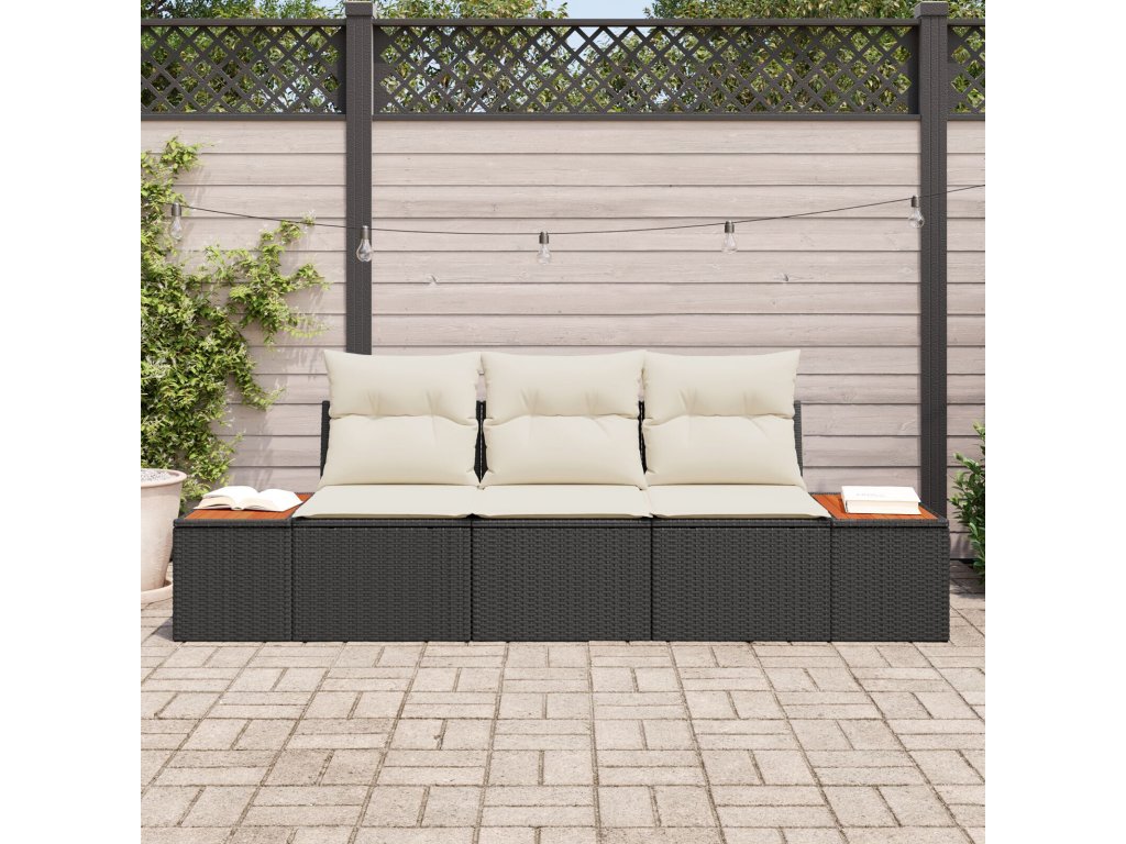 Sada zahradních pohovek s polštářem 3 pcs Černá polyratan