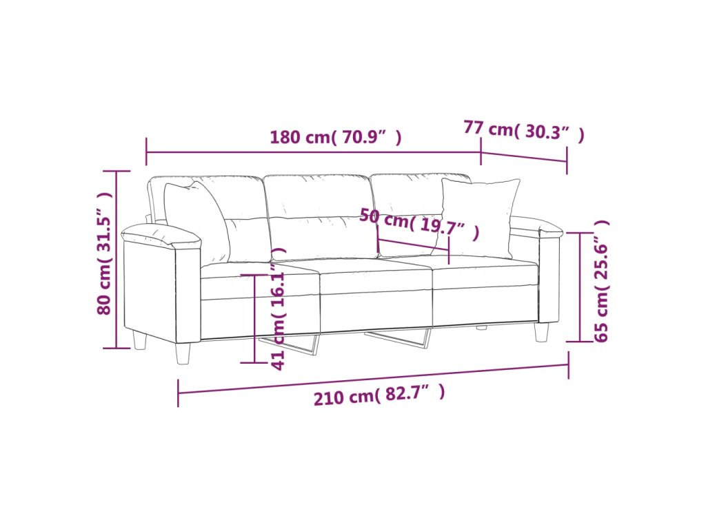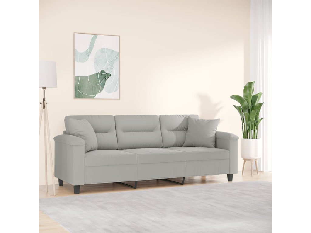 3místná pohovka s polštáři světle šedá 180 cm mikrovlákno