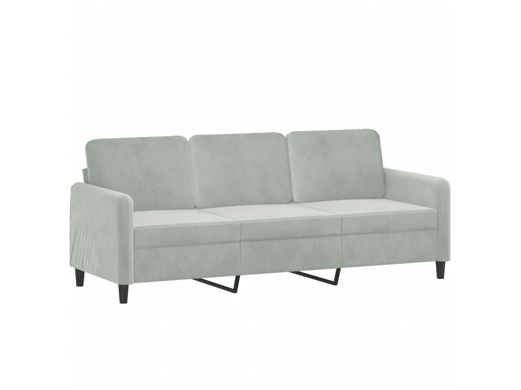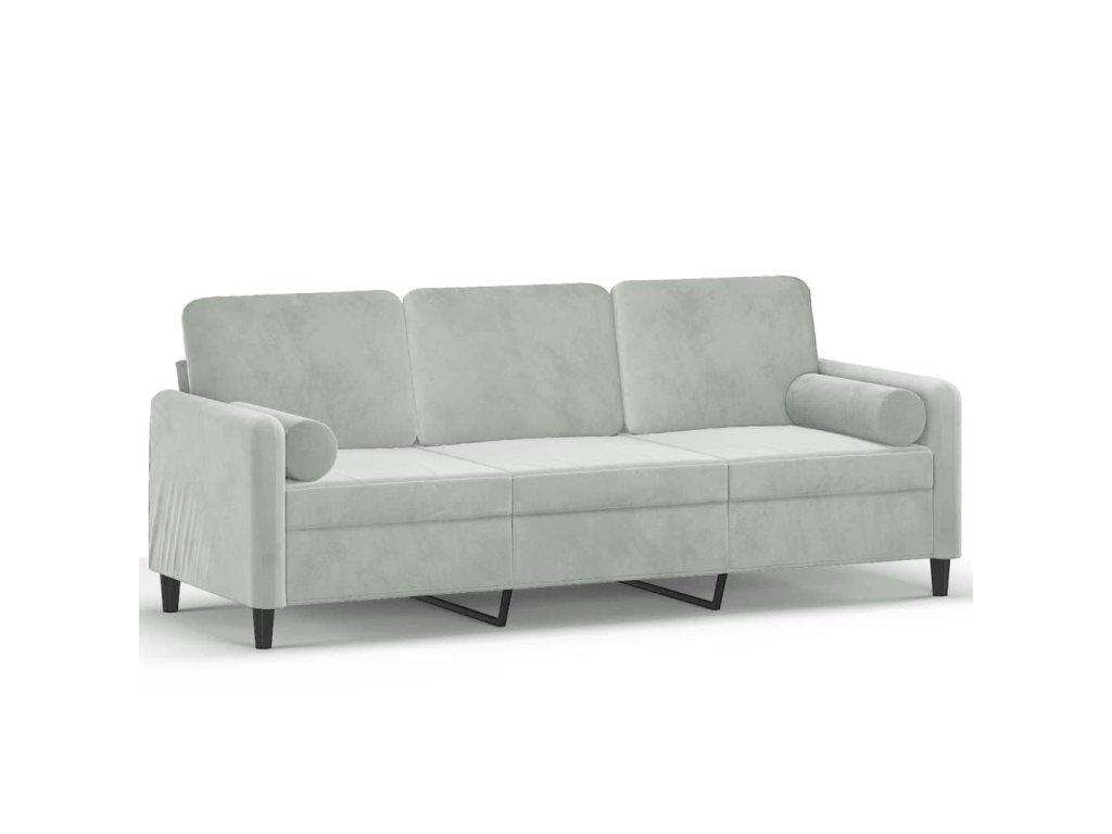 3místná pohovka s polštáři světle šedá 180 cm samet