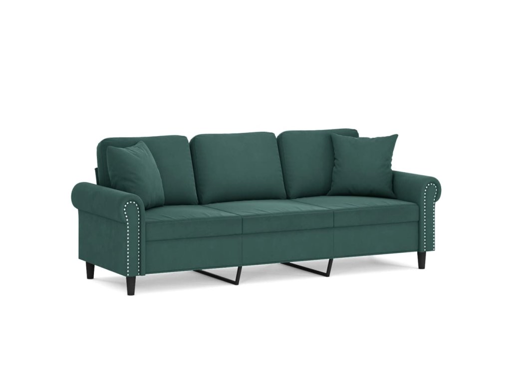3místná pohovka s polštáři tmavě zelená 180 cm samet