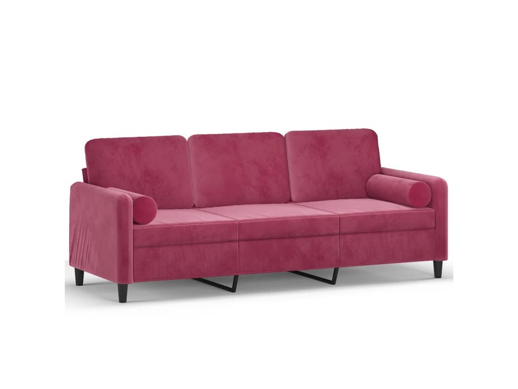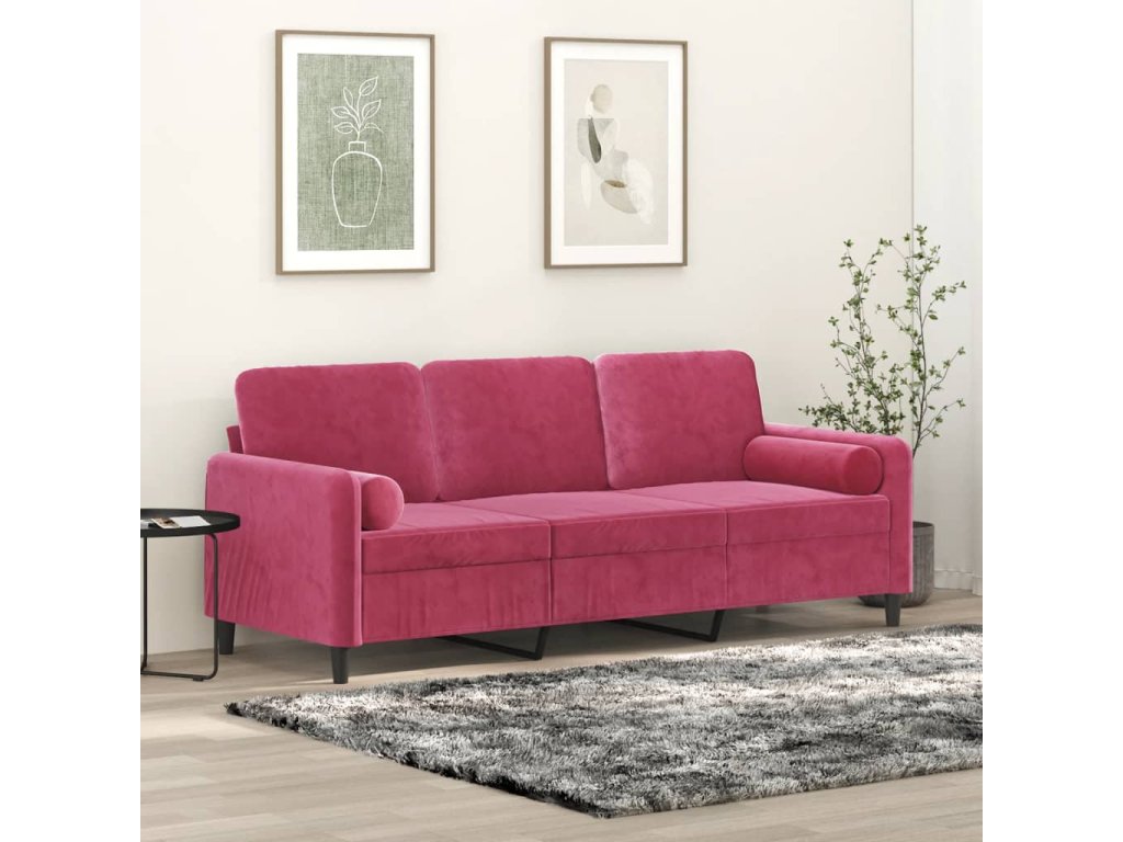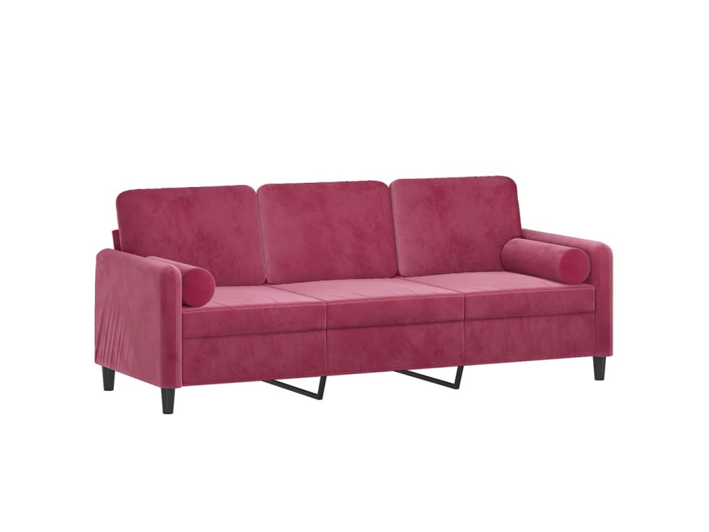 3místná pohovka s polštáři vínová 180 cm samet