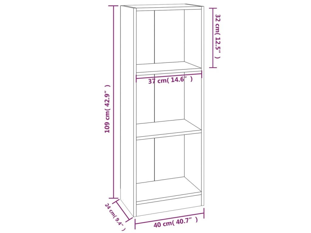3patrová knihovna hnědý dub 40 x 24 x 109 cm kompozitní dřevo