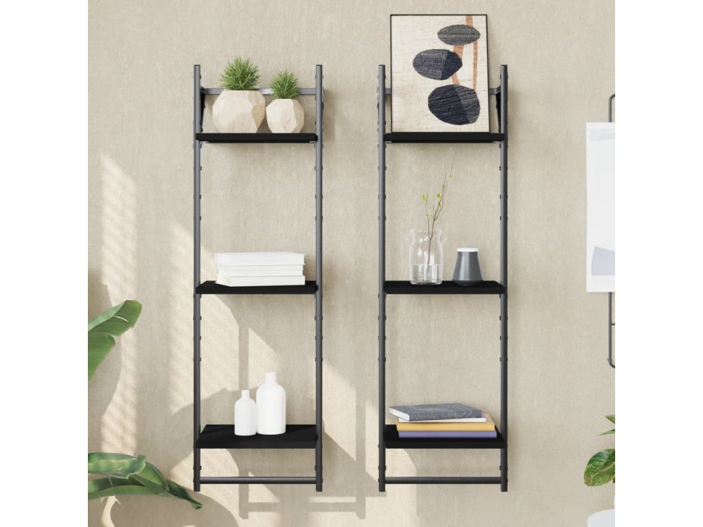 3patrové nástěnné police s tyčemi 2 ks černé 30 x 25 x 100 cm