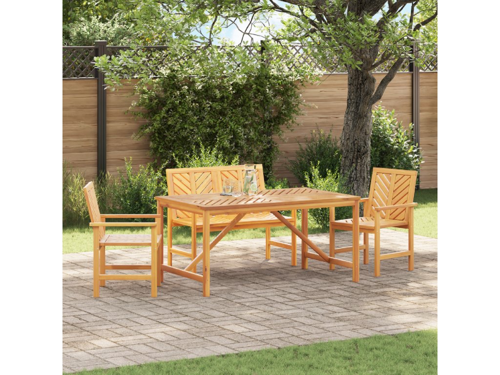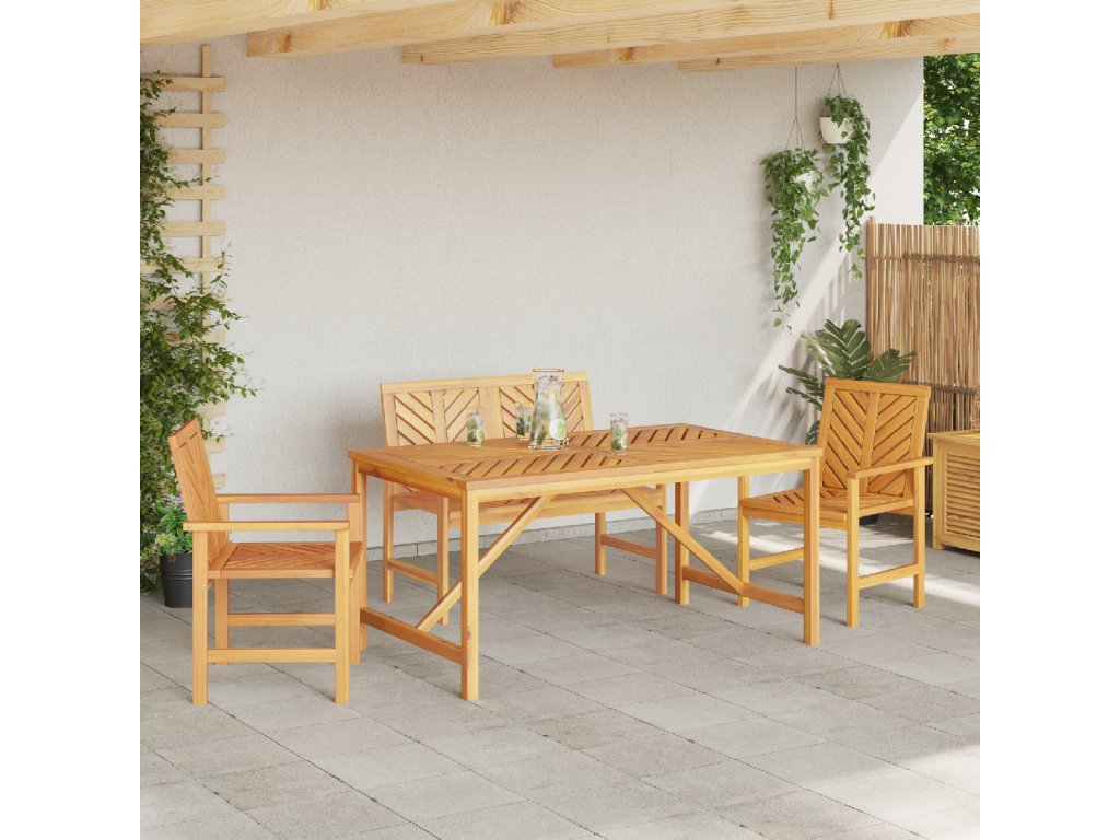 Zahradní jídelní set z akáciového dřeva nabízí skvělou kombinaci funkce a prvotřídního stylu pro tvůj venkovní život. S minimalistickým nádechem předvádí čisté linie a přírodní kouzlo masivního akáciového dřeva, který se perfektně hodí do různých zahradních prostředí. Je ideální pro malé, intimní večeře a vytváří pěkný středobod ve tvé zahradě nebo na terase – ideální pro relaxované večery nebo klidné chvíle.