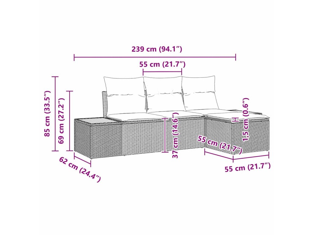 - Součásti: Set obsahuje střední sedadlo a dva pohovkové kusy, obě s prostorným úložným místem a podnožkou s krytým úložištěm. Každý kousek je pečlivě navržený, aby splnil vaše potřeby a zlepšil váš venkovní zážitek.