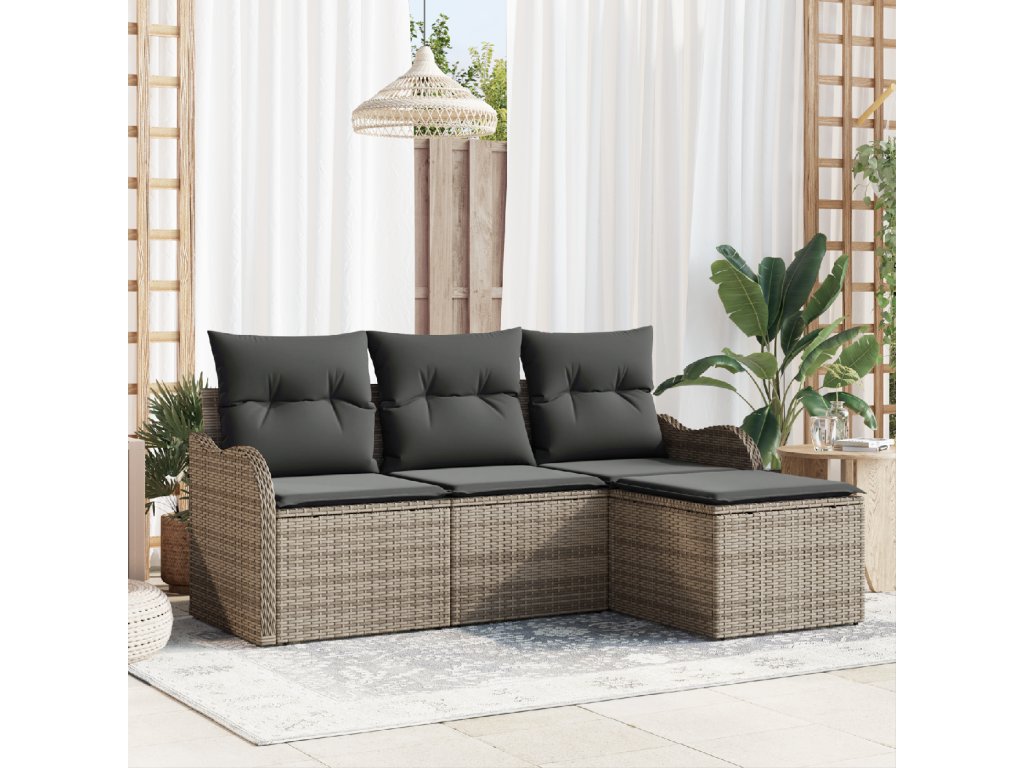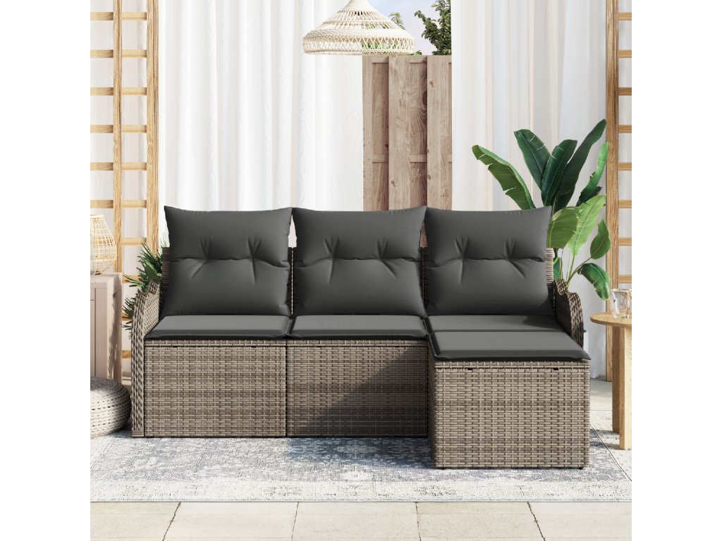 Sada zahradních pohovek s úložištěm 4 pcs Šedá polyratan