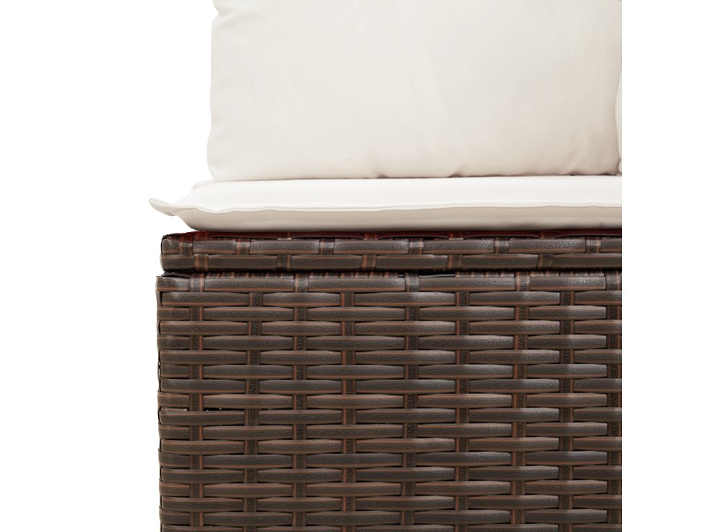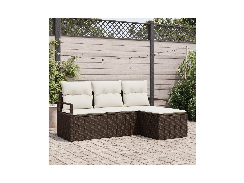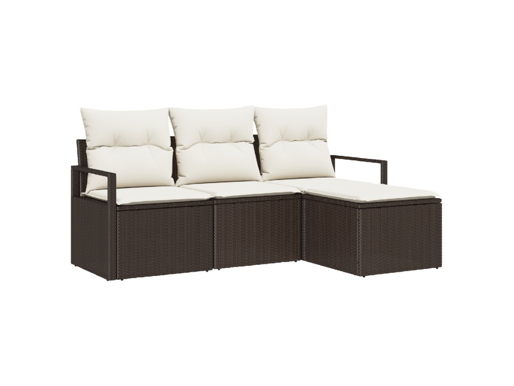 Materiály: Konstrukce z poly ratanu je robustní a odolná vůči nepříznivým podmínkám, včetně UV záření. Tkaný materiál dodává eleganci a je ideální pro použití venku během jara a léta. Součásti: Zahradní pohovka se skládá ze středního sedáku, dvou bočních pohovek a podnožky. Polštáře plněné pěnou zajišťují pohodlí, oporu má na robustním rámu z práškově lakované oceli. Zipy umožňují snadné sejmutí a údržbu polštářů. Dokončená zadní část a ploché opěrky rukou zajišťují dokonalý vzhled ze všech stran. Funkce / design: Modulární uspořádání lze přizpůsobit různým prostorům, aniž by se obětoval komfort nebo estetika. Ideální pro ty, kteří mají rádi flexibilní a stylový venkovní nábytek. Doporučené použití: Perfektní na zahrady, terasy a venkovní prostory. Vytváří příjemné místo pro setkání i klidné chvíle odpočinku. Ať už hostíte nebo si užíváte osamělost, s těmito kusy se do každého venkovního prostředí dodá šmrnc. Údržba: Zakryjte pohovku, když ji nepoužíváte, aby se chránila před nepřízní počasí a zůstala v bezvadném stavu. Pravidelně ji čistěte suchým hadrem, abyste udrželi její luxusní vzhled.- Barva: Hnědá