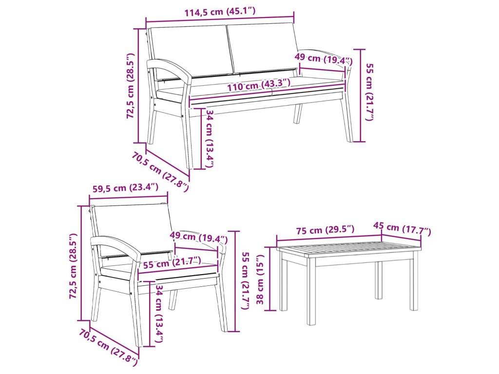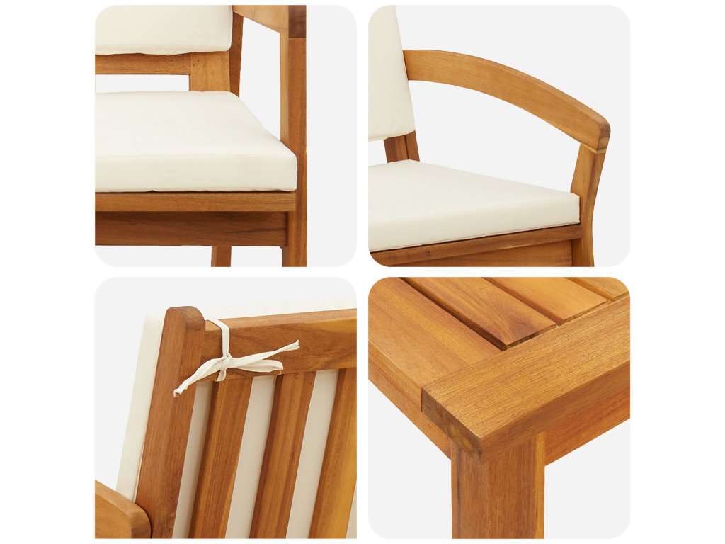 Tahle bistro souprava ti dává super možnost užít si venkovní sezení se svým stylovým a praktickým moderním designem. Je vyrobená z masivního akáciového dřeva, má silný obdélníkový rám, ideální na každou zahradu nebo terasu. Postavená tak, aby přežila jakékoliv počasí, tahle souprava je super na venkovní použití.